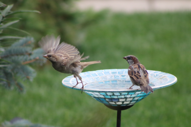 Not as entertaining as the hummers but they still keep us busy cleaning messes and their bird baths. Continuously filling feeders and refreshing their water.